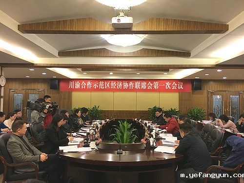 2017年12月29日,首届川渝合作示范区经济协作联席会在四川广安召开。川渝两省市发展改革、经济信息、商务、中新(重庆)示范项目管理局等相关部门,重庆潼南、渝北、北碚、合川、长寿、垫江和四川广安、遂宁、泸州、内江、隆昌、合江等毗邻区市县相关负责人参加了会议。